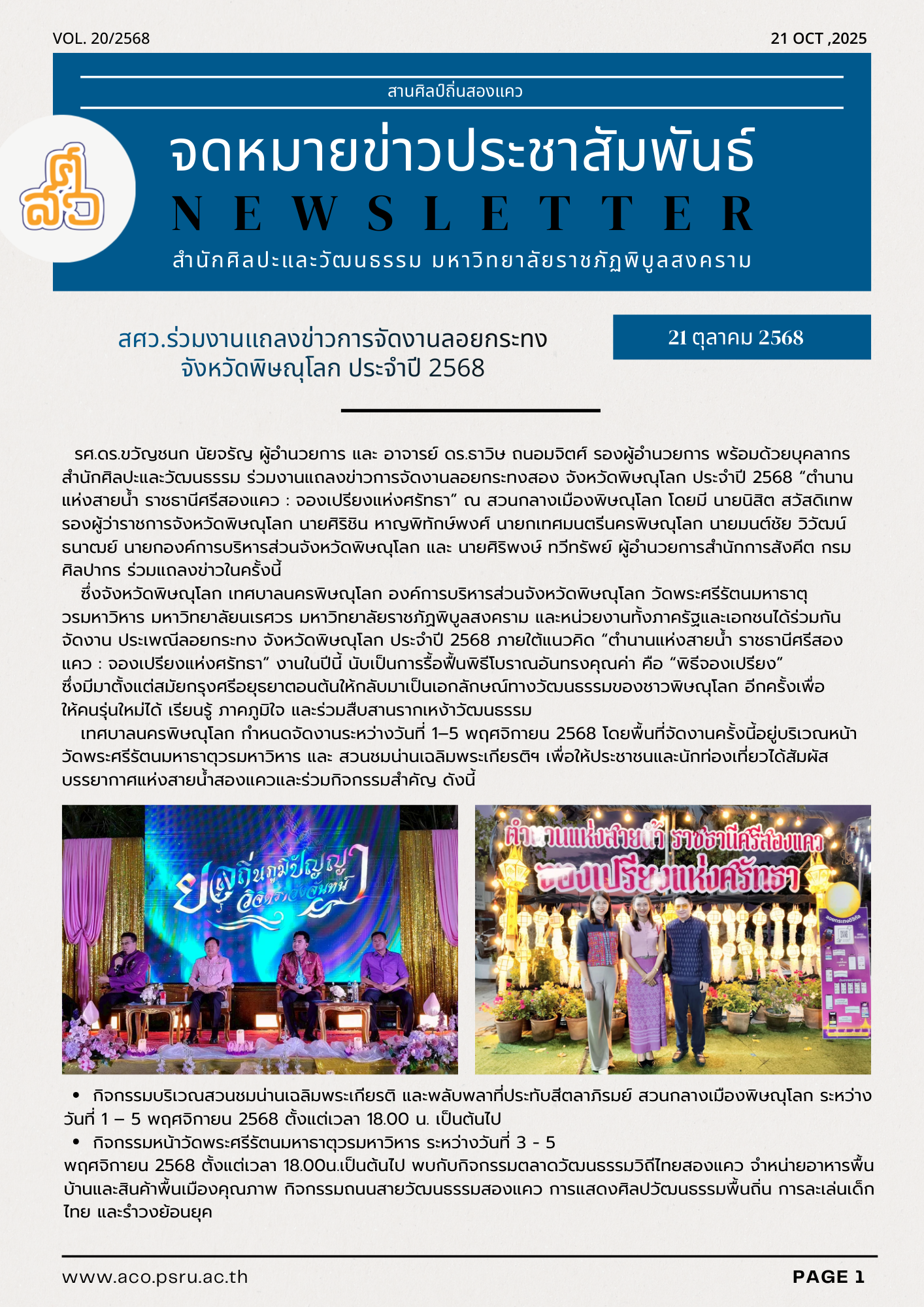 จดหมายข่าว “สานศิลป์ถิ่นสองแคว”