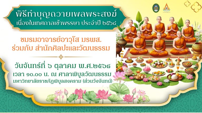 ข่าวประชาสัมพันธ์สศว.เป็นเจ้าภาพ พิธีทำบุญถวายเพลพระสงฆ์ By aco psru / 2025-10-06 จดหมายข่าว “สานศิลป์
