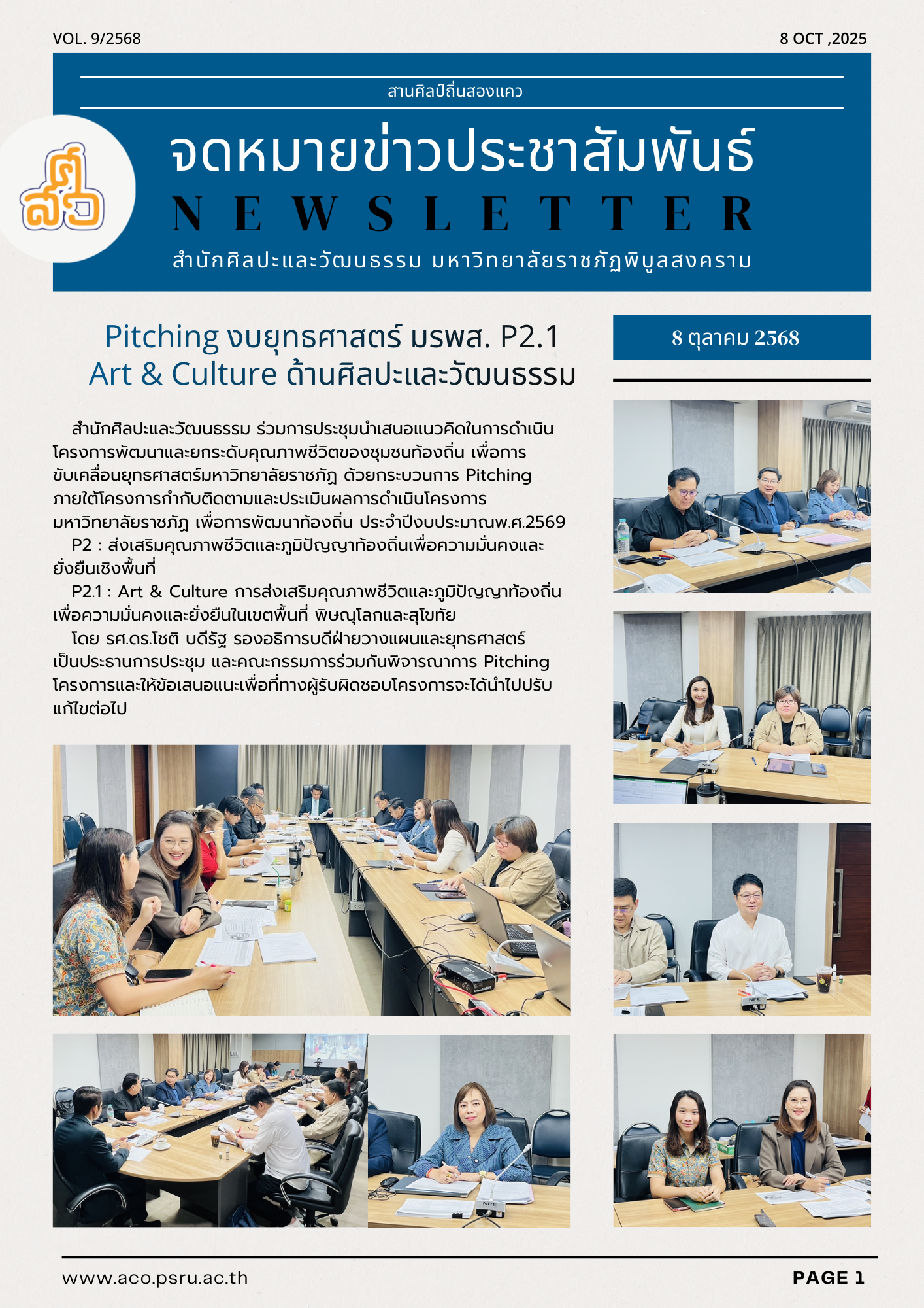 Pitching งบยุทธศาสตร์ มรพส. P2.1 Art & Culture ด้านศิลปะและวัฒนธรรม